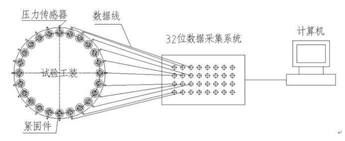 法蘭密封綜合性能測(cè)試平臺(tái),用于分析法蘭螺栓彈性交互作用在預(yù)緊施過程中的作用規(guī)律,主要包括法蘭組件(24個(gè)螺栓)、螺栓力測(cè)量傳感器、數(shù)據(jù)采集系統(tǒng)和安裝配件等。