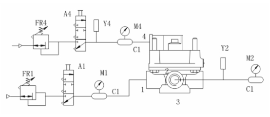 將圖中被測樣品進(jìn)氣口的 1L 貯氣筒更換為 40L 貯氣筒,打開控制閥 A1,從被測樣品進(jìn)氣口充氣至 PE+50 0 。操縱微調(diào)閥 FR4,使控制口輸入氣壓從零緩慢上升至 PE+50 0 ,然后再緩慢下降至零,同時(shí)記錄出氣口輸出氣壓隨控制口輸入氣壓變化的關(guān)系曲線。若采用非連續(xù)記錄方法, 當(dāng)出氣口輸出氣壓小于140kPa 時(shí),控制口輸入氣壓的最大測量間隔應(yīng)不大于 1.5kPa,當(dāng)出氣口輸出氣壓大于 140kPa 時(shí),控制口輸入氣壓的最大測量間隔應(yīng)不大于 10kPa。?