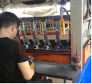 (2)工裝目前分為兩個部分,氣源通過三聯(lián)件后,直接通過工裝上的氣嘴將壓縮空氣打入工件專用工裝,工裝使用硅膠片/橡膠片作為密封件。由于工件本身密封面較粗糙,密封件需要隔段時間進行更換。(備注:由于此處工件為機加工工序直接周轉(zhuǎn)下加工件,表面存在切削液殘留、鐵屑殘留。周轉(zhuǎn)至氣密性試驗工序后,需要人工進行人工質(zhì)檢。目前氣密性試驗機水箱內(nèi)填充切削液,切削液中殘留部分鐵屑及其他雜物,導致水面不透亮。所有切削液均為水基切削液。)
