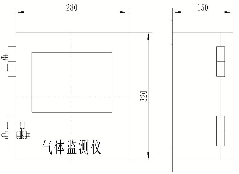 氣體監(jiān)測儀主機為不銹鋼壁掛箱體,帶透明玻璃視窗,箱體尺寸預(yù)計為:280*320*150mm(長*高*厚)。箱體為鉸鏈式前蓋開門結(jié)構(gòu),帶有小門鎖。