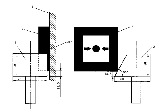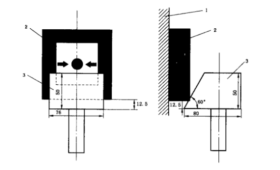 2.2調(diào)整碰撞試驗(yàn)設(shè)備,使錘頭碰撞面能夠分別從圖1和圖2所示的兩個(gè)方向,以1.5m/s±0.13m/s的錘頭速度,1.9J±0.1J的碰撞動(dòng)能碰試樣一次。碰撞后,保持2min,觀察并記錄試樣。狀態(tài)