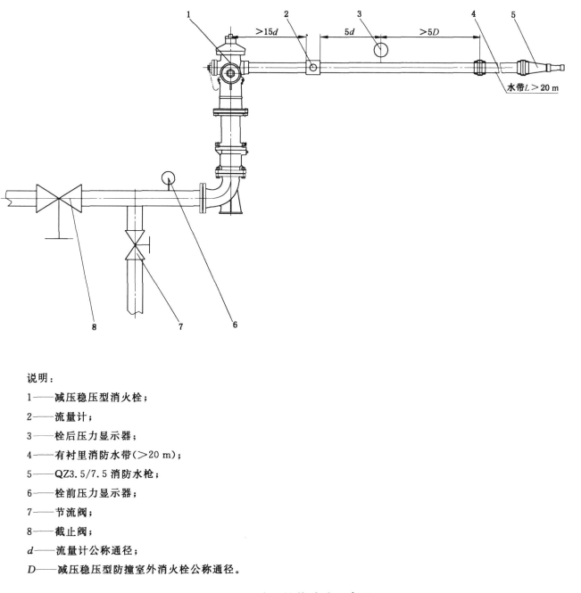 將消火栓按實際使用狀態(tài)安裝在一與管道連接的、可加壓的固定的基座上,關閉消火栓的閥門,將管道內的壓力升至公稱壓力,用外力撞擊消火栓使之斷裂,檢查斷裂部位及閥座的密封。判斷試驗結果是否符合:防撞型地上消火栓在受外力撞擊后發(fā)生斷裂時,只允許斷裂某一部件,栓體和閥體應完好無損,閥座應無滲漏現(xiàn)象。