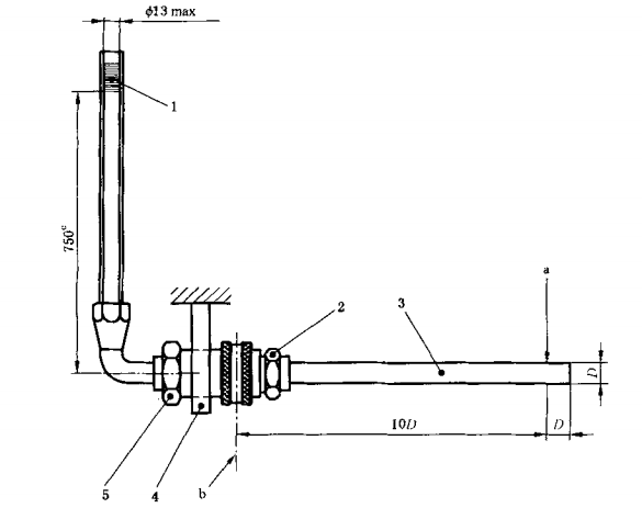 將接頭總成放入到試驗(yàn)裝置中。將試驗(yàn)油注人試驗(yàn)裝置至 75cm的高度。距離鎖定裝置的測(cè)量棒的軸線為 IOD 處,施加 50 N 載荷垂直于接頭中心線,D等于GB/T 2351中的軟管公稱內(nèi)徑。